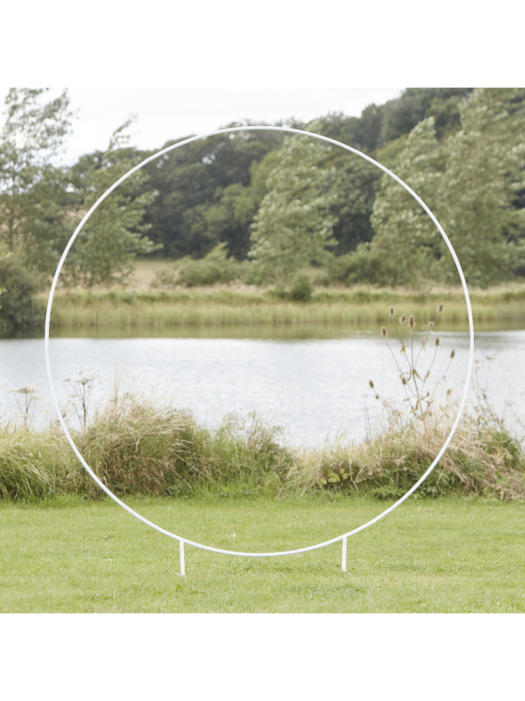 Dieser weiße runde Hochzeitsbogen ist die perfekte Kulisse für Ihre Zeremonie oder als dekorative Hochzeitskulisse.