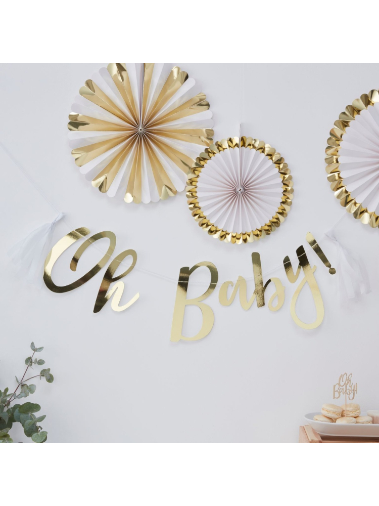 Diese Goldfolie Oh Baby Sling ist ein Muss für die Babyparty.