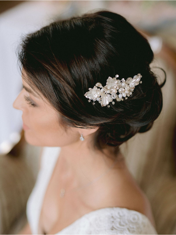 Wunderschöner Brauthaarkamm mit Silber plating von G.Westerleigh, handgefertigt und mit kostbaren Strasssteinen, Silberblättern und Ivory imitatperlen verziert.